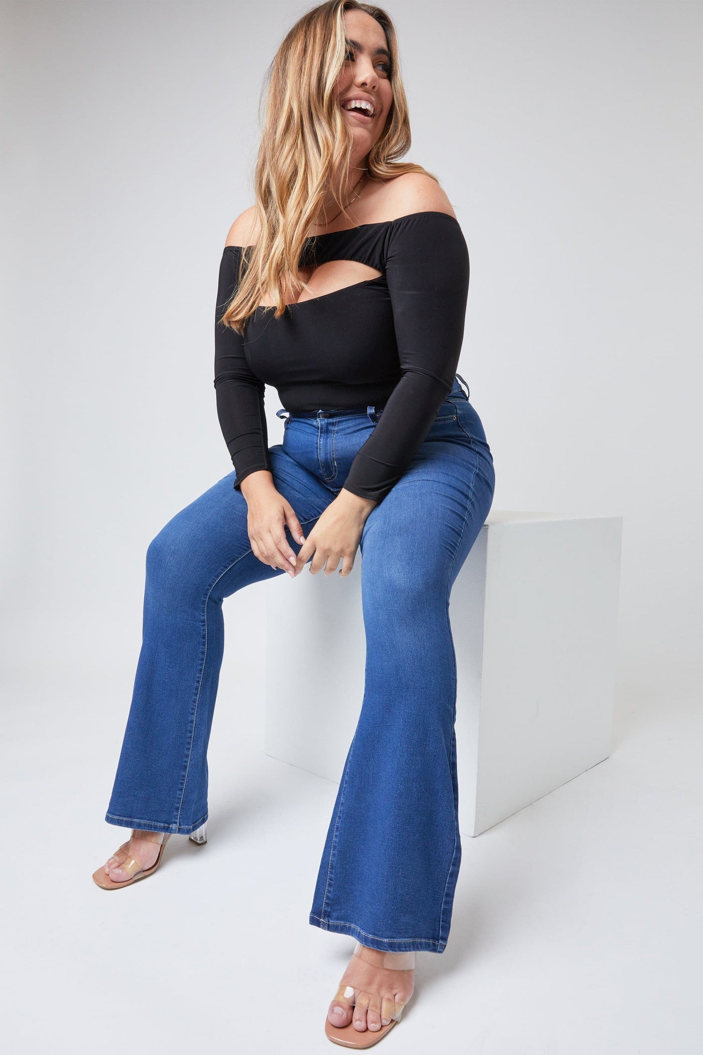 Our Women’s Plus Size Hyper Denim Super Stretchy Flare Jean is ready for work, date night, and everything in between. The super-soft fabric makes this piece even more comfortable than they look. Featuring a 5-pocket construction, single-button closure with front zip, and belt loops. These hyper denim ‘fits offer you the ultimate stretch with the maximum comfort every wear.