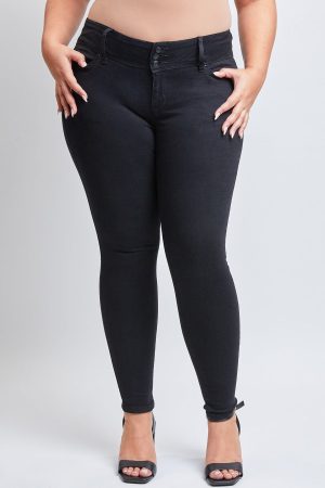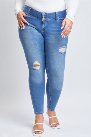 Figure-defining and oh so comfy! Look and feel good in our Basic High-Rise Skinny Jean With Functional Front Pockets Made With Recycled Fibers. Designed in a variety of washes to pair with any outfit or mood! Featuring an ultra-skinny leg and full-length silhouette. Not only is it made with tons of stretch and recovery, but it’s also made with recycled fibers, so you can feel extra good while wearing them! Designed with 3 exposed buttons for a trendy, yet vintage-inspired look. Wear these dressed up or dressed down: the options are endless! Style them with a tank, flannel, and sneakers for a sporty feel, or dress them up with a bodysuit and heels!Â