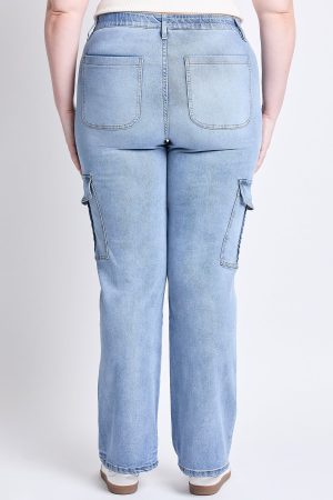 Women’s Plus High Rise Elastic Waist Cargo Straight Leg Jeans are the ultimate combination of utility and contemporary style. These jeans feature a high-rise waist and a straight-leg silhouette, offering a flattering fit with a modern edge.