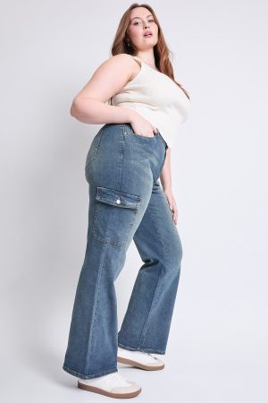 Women’s Plus High Rise Wide Leg Skater Cargo Jeans by YMI Jeans, where edgy street style meets modern utility for the trendsetting woman. Crafted with meticulous attention to detail, these jeans offer a perfect blend of bold design and practical features.